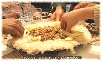 Cuisine traditionnelle préparée par Amina la maîtresse de maison.